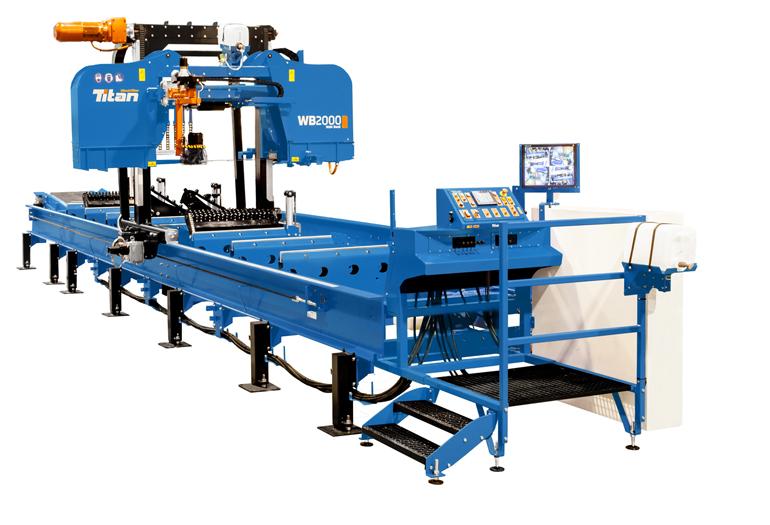 Všechny stroje TITAN jsou modré, aby se odlišily od dobře známých pil Wood-Mizer s úzkým pilovým pásem.