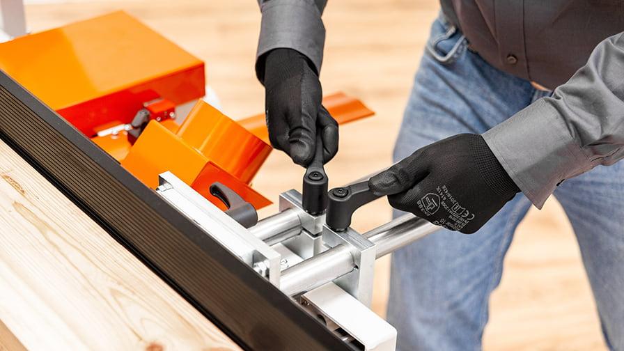 • Hliníkové boční vodicí lišty se naklápějí až o 45 stupňů.