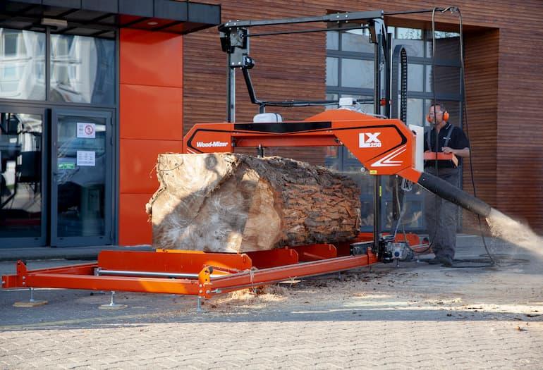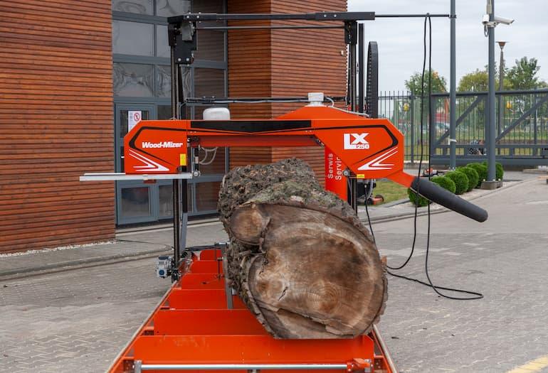 Pila LX250 má druhou největší kapacitu v paletě světově proslulých pil Wood-Mizer s úzkým pilovým pásem vedle pily WM1000 schopné řezat kmeny o průměru 170 cm.