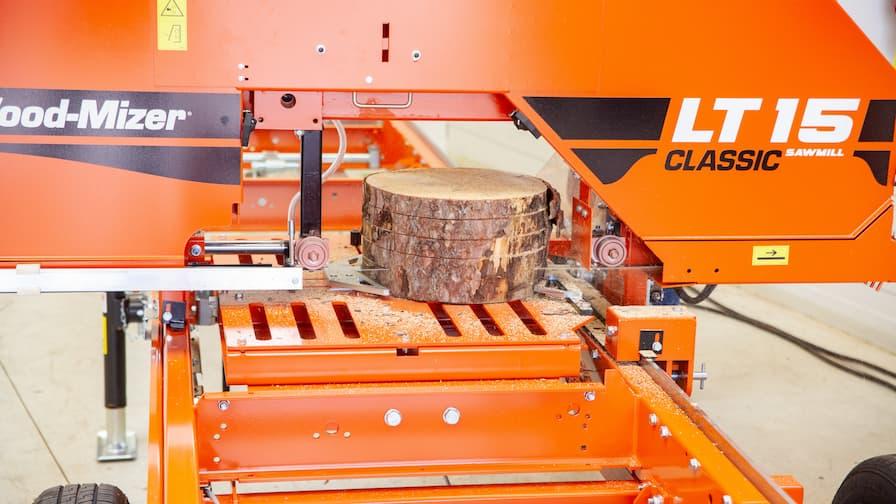 Minimální průměr kmene je 127 mm (5”) s řeznou výškou 24-600 mm. Pro kmeny, které nejsou dokonale kulaté zahrnuje posuvná upínka další natočení pro lepší zajištění nepravidelně tvarovaných kmenů. Přídavné nástavce pro zvýšení upínek umožňují lepší sevření některých nepravidelných kmenů.
