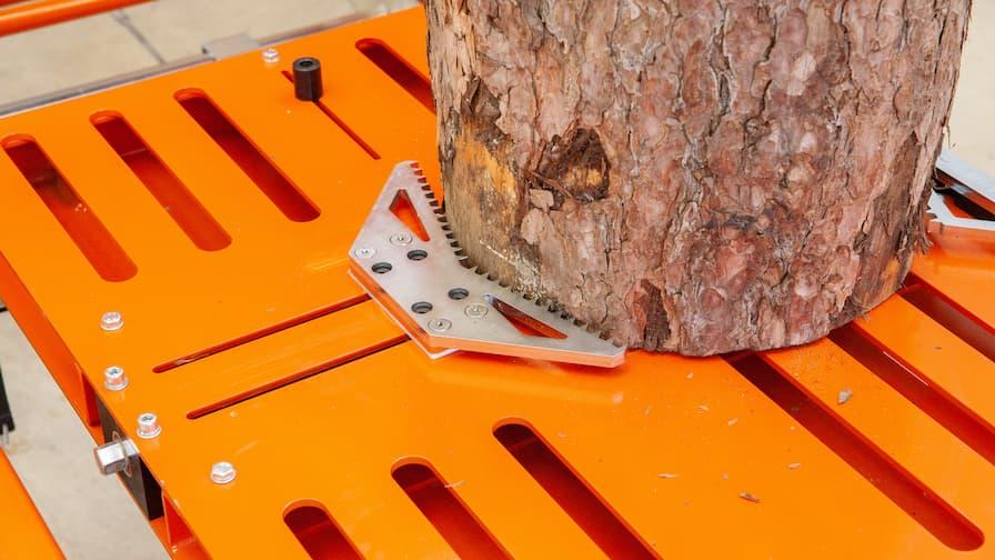 Upínací přípravek CookieMizer používá dvě upínky kmene ve tvaru V, jednu posuvnou a jednu pevnou. Upínání má ostré zuby k pevnému přidržení kulatých kmenů o průměru až 508 mm (20”) v základu během řezání v jejich vztyčené poloze.